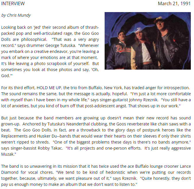 • Robby Takac shares his thoughts in this very interesting 1999 interview