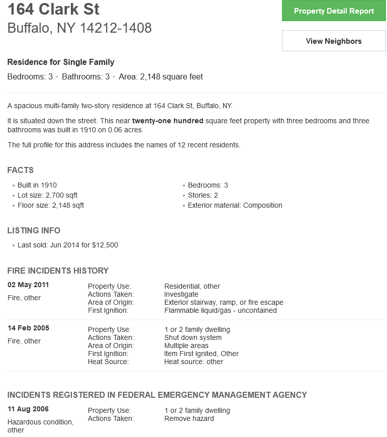 Homemetry also reports its lot size dimension, claims it is a 2-story building, and furthermore lists three different accidents happening to it since 2005.