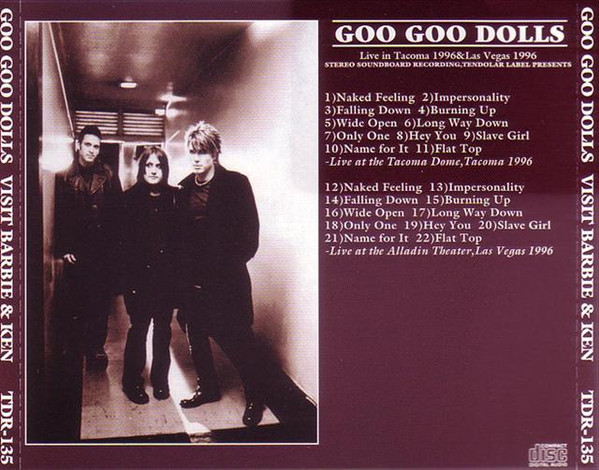Here I present to you “Goo Goo Dolls Visit Barbie & Ken”, a bootleg capturing two separate concerts which took place in 1996 at two different locations. The bootleg was “officially” released in 1999. The concerts took place at the Aladdin Theater, Las Vegas, NV, USA, on March 10th, 1996 and at the Tacoma Dome, Tacoma, WA, USA, on April 26th, 1996.