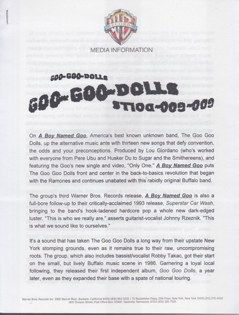 Today, we share an historical document released by Warner Bros., the label the band was under back in 1995, when “A Boy Named Goo” was issued.