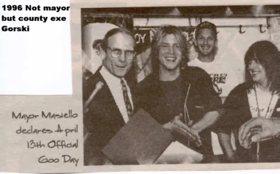 The second one was taken in 1996, and is a picture of all three Goos with the mayor I think. This was when they proclaimed April 13th (I think) Goo Goo Dolls day. This was when they’d finished up their tour and came home to Buffalo to do a big homecoming show.