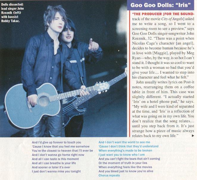 Today we received a scanned copy of a short article discussing what inspired lead singer John Rzeznik to write the worldwide famous hit “Iris“.
