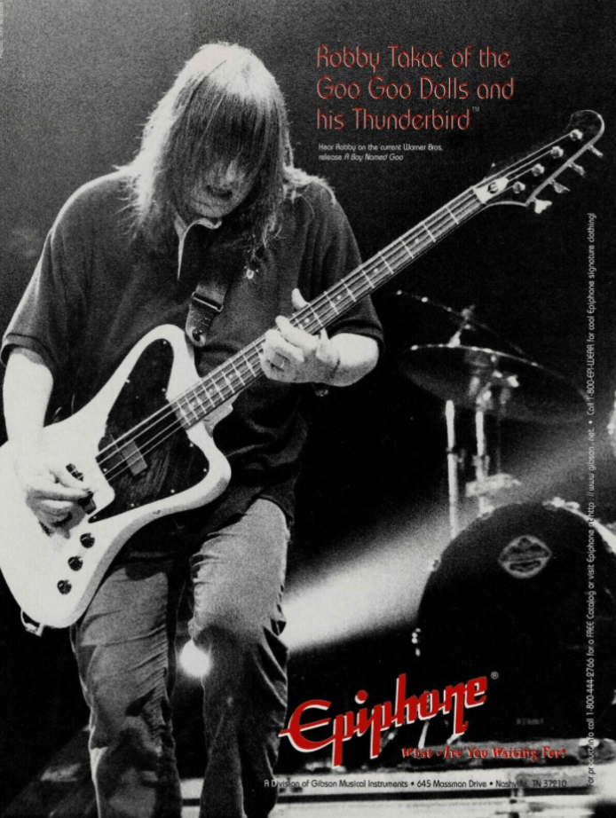 Sometimes around 1995, certainly after breakthrough album “A Boy Named Goo” was released, Epiphone issued a copy of their famous magazine with a couple of pictures of John and Robby rocking their guitars. Let’s hear directly from Bailey: