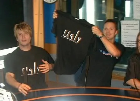 The second one is (also) 1998, and I think this was an interview for a radio station. Their holding up “Ugly” shirts, for whatever reason. I’d love a little more info on this picture (haha).