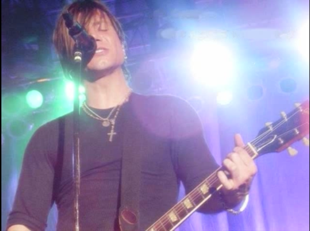 And, while I’m at it, I’ll share a couple rare pictures from that era. A candid shot of John (probably during an interview), one of Robby playing his orange bass and smiling, and John playing live circa 2001.