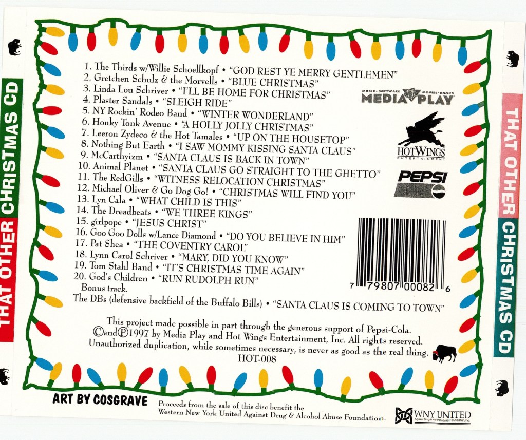 One of the reasons I’ve struggled so much to find the CD which features the song is that it is actually very rare. The “That Other Christmas CD” was issued in 1997 and sold only in a few music stores in Buffalo, NY, the Goo Goo Dolls’ native hometown. The goal was to gather money which was then utilized for charity activities towards a drug & alcohol abuse foundation in the very same area. I tracked the CD for many years before finding someone willing to sell it to me. When I did, there have also been issues with international shipping which delayed even further this very late Christmas gift for you all.