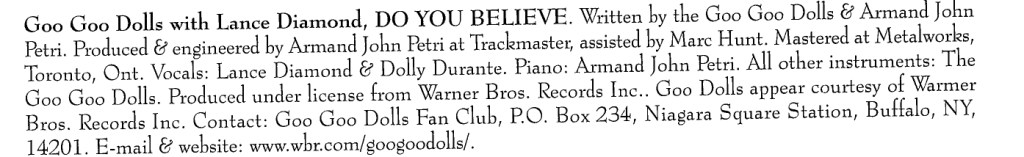 • We also get to know who actually wrote it, that is the band themselves along with John Armand Petri. According to Discogs, Petri only has one writing credit on his belt, and it is not for a Goo Goo Dolls song. This information is pivotal: “Do You Believe” was the first and only song the band wrote with him.