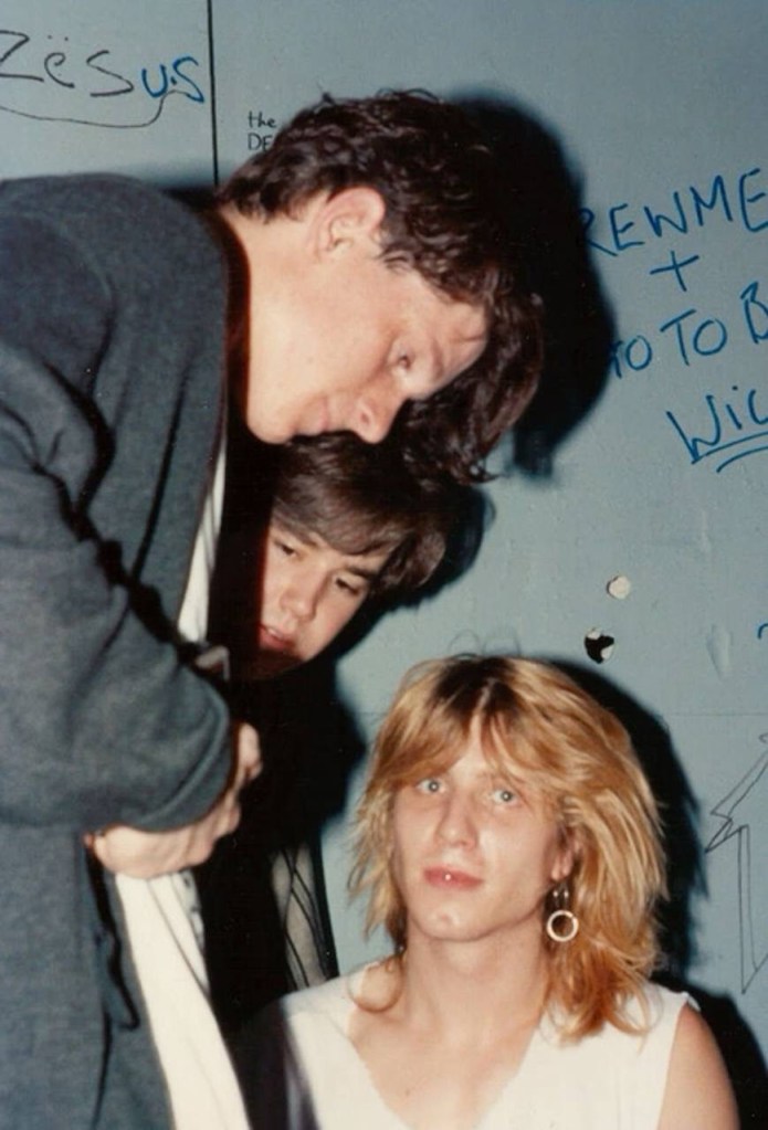 So here’s Johnny Rzeznik circa 1988 with some fans who seem like they’re handing the blonde a shirt to sign.
